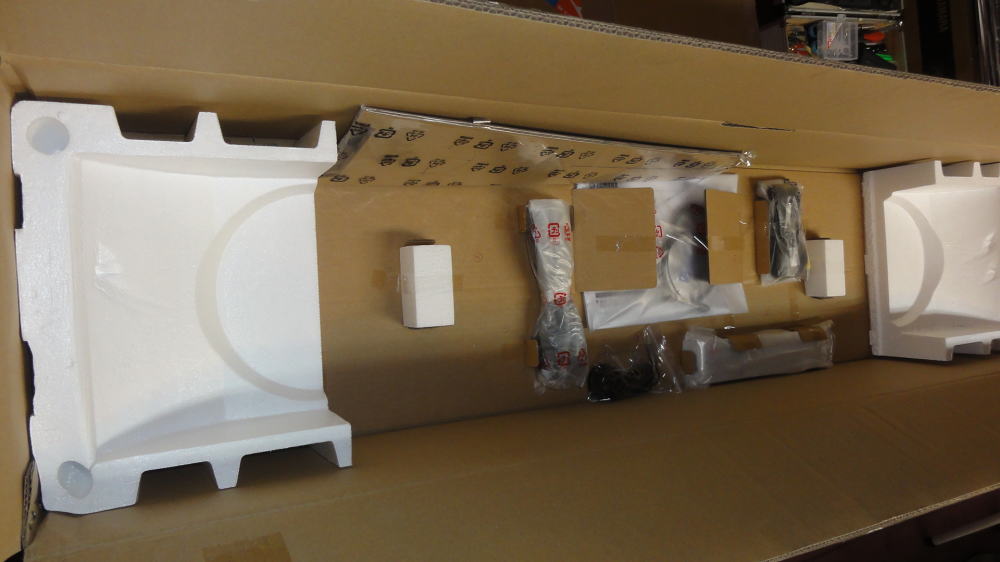 (付属品は開封した形跡もなく 本体の方も包んでいるシートを一度外した形跡があるだけですので 新品同様の状態ですが通電したか不明ですので デモ機の特価と一緒にしました。)