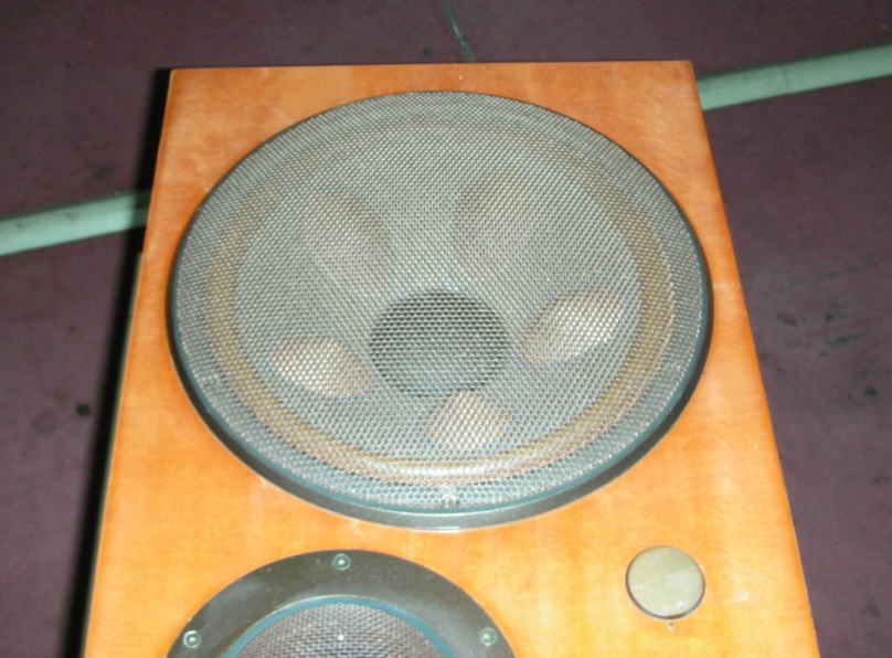 右側(上)スピーカ 乾燥のための 経年劣化のためか 塗装が細かいひびのような